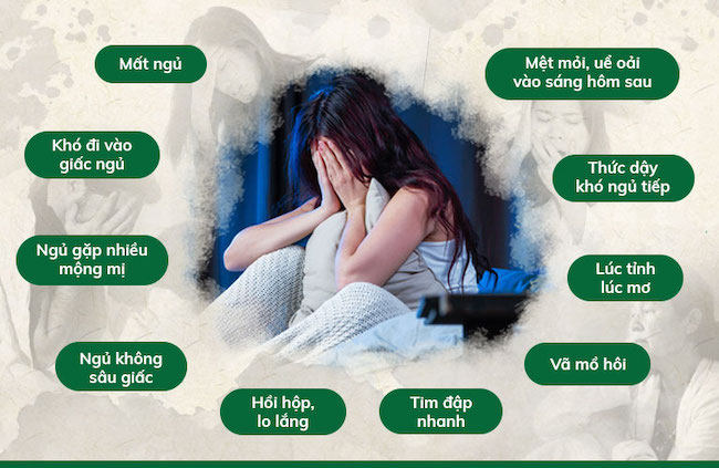 Bệnh nhân phàn nàn về việc khó đi vào giấc ngủ, khó duy trì giấc ngủ hoặc ngủ không ngon giấc.